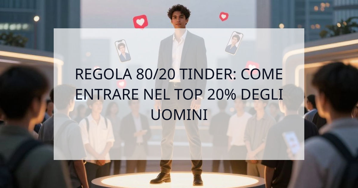 Scopri la verità sulla Regola 80/20 Tinder e impara i passi esatti per ottimizzare il tuo profilo ed entrare nel top 20% degli uomini che ottengono tutti i match.