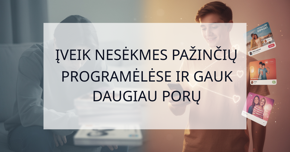 Nesėkmės pažinčių programėlėse yra neišvengiama proceso dalis, tačiau jos neturi sugriauti tavo pasitikėjimo savimi ar apibrėžti tavo patirties. Tai visuotinis nusivylimas, bet dabar tu turi įrankius, kad pakiltum virš jo.